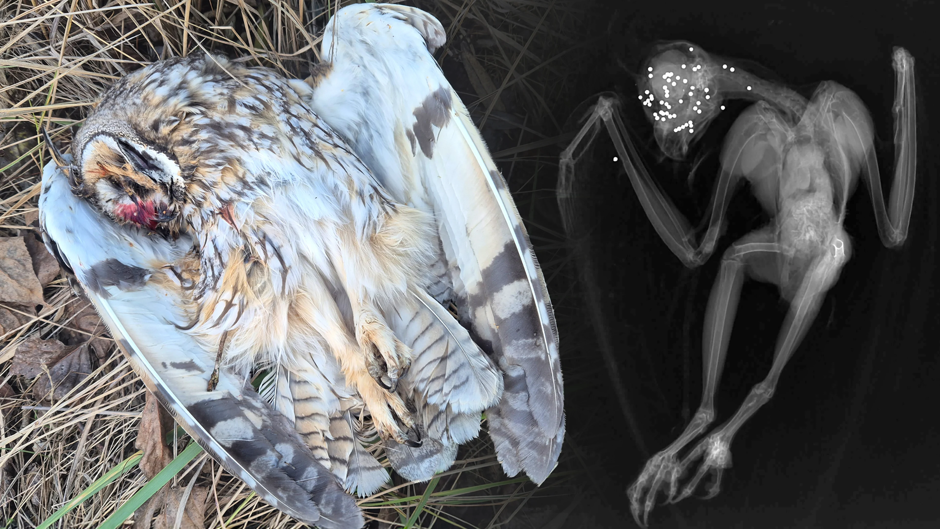 „Einer der Waldohreulen wurde offensichtlich in den Kopf geschossen, das Röntgenbild zeigt über 50 Schrotkugeln im Kopfbereich“, so Johannes Hohenegger, Experte für Greifvogelschutz bei BirdLife Österreich: „Die andere Eule hatte Schrotkörner in Flügel und Bein sowie mehrere Knochenbrüche.“