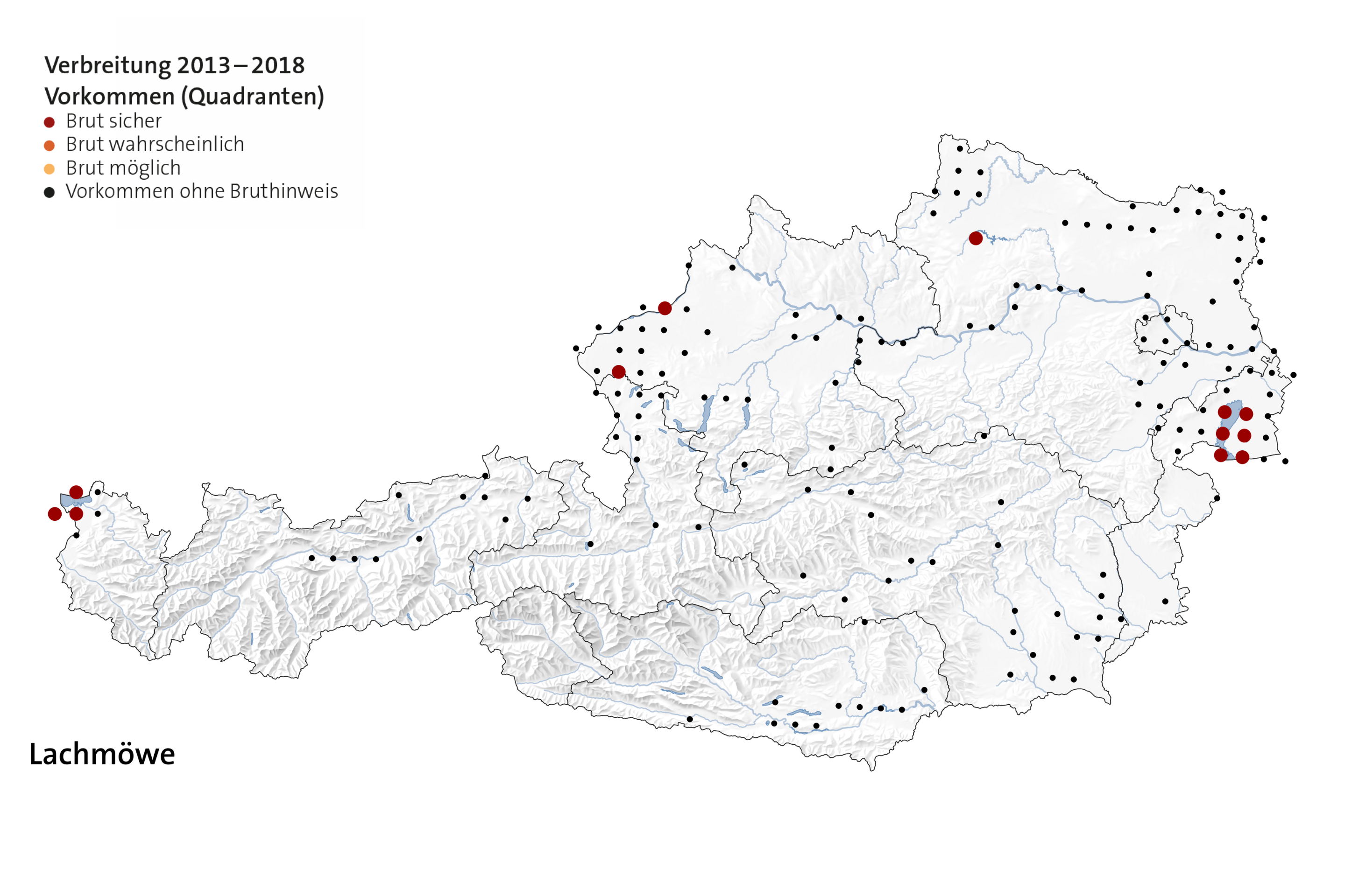 Diese Verbreitungskarte stammt aus dem Österreichischen Brutvogelatlas 2013-2018 der 2024 im Verlag des Naturhistorischen Museums Wien erschienen ist.